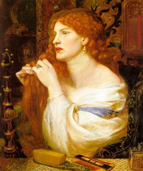 Alicia hasn’t been altogether thrilled at gaining a beautiful blond step-mother barely older than she is. She takes malicious pleasure, therefore, in leading the young men through a secret tunnel into Lucy’s locked boudoir, where she shows the visitors a painting of Lady Audley commissioned by her doting husband. “The painter,” remarks our narrator, “must have been a pre-Raphaelite,” as only a member of that subversive artistic brotherhood — known for their fascination with overtly sensual and morally problematic women — could have created a portrait at once so gorgeous and so discomfiting: